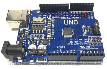 Arduino UNO开发板上只有带有“~”表示的引脚才具有PWM功能,因此我们在控制驱动时可以使用这几个引脚。